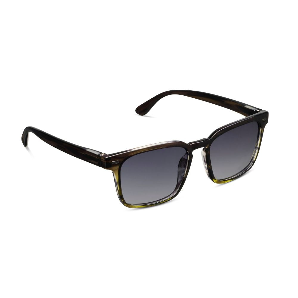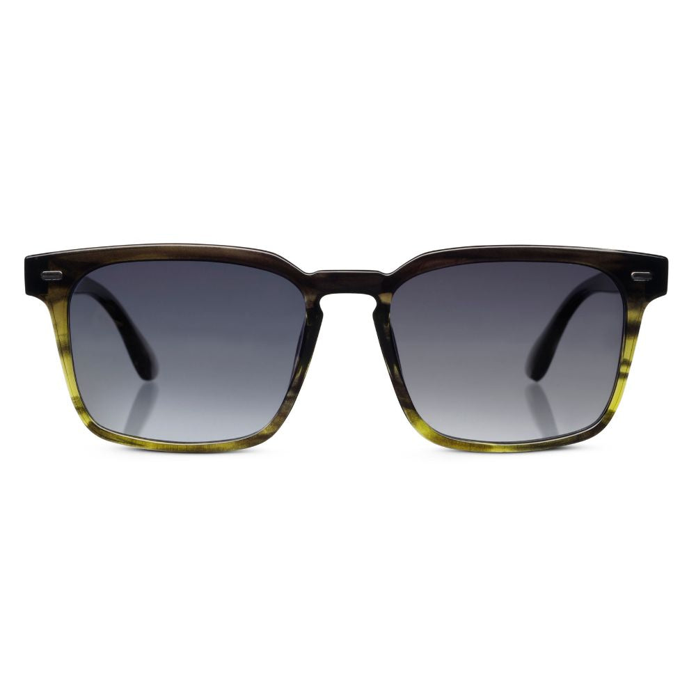 Shasta is a style for daring dressers with a distinct eye. Striking gold pin details dot the corners of the prominent square sunglasses, always making an impression. Deep Blue frames surround smoke gradient lenses, while translucent Tan frames and amber gradient lenses catch the sunlight beautifully. The newest addition, Green Ombre Horn, pairs smoke gradient lenses with rich, earthy hues and a soft wash of green that deepens toward the base—cool, grounded, and effortlessly unique.