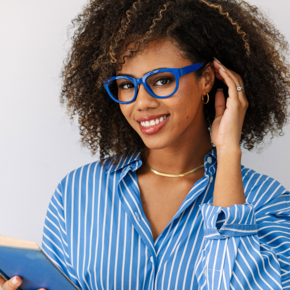 Bring a bright, uplifting touch to your look with Bee's soft square shape and playful floral details tucked along the inside of each temple. The color-blocked design feels charming and effortlessly expressive, giving you a little spark of joy every time you put them on.