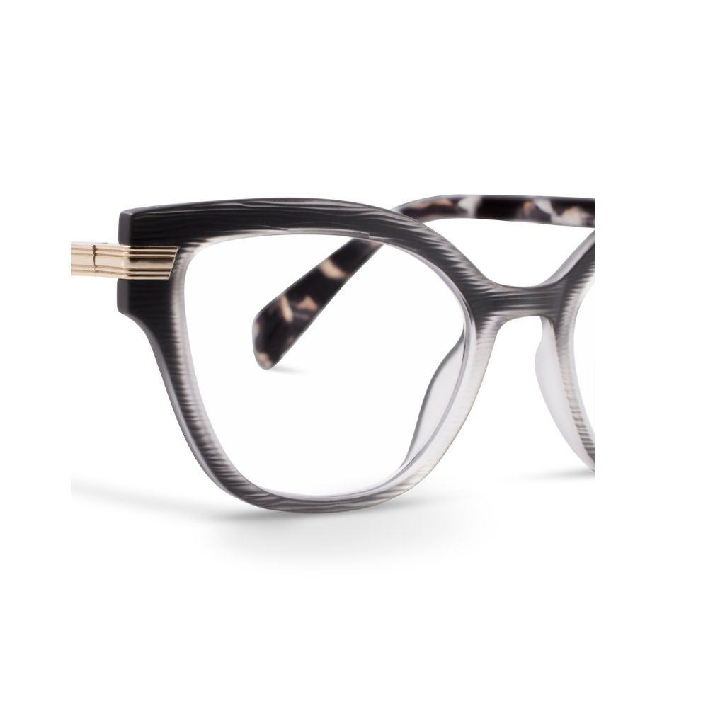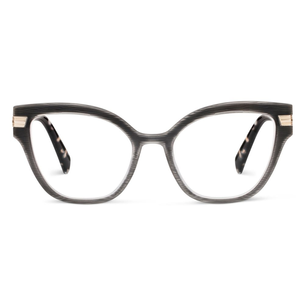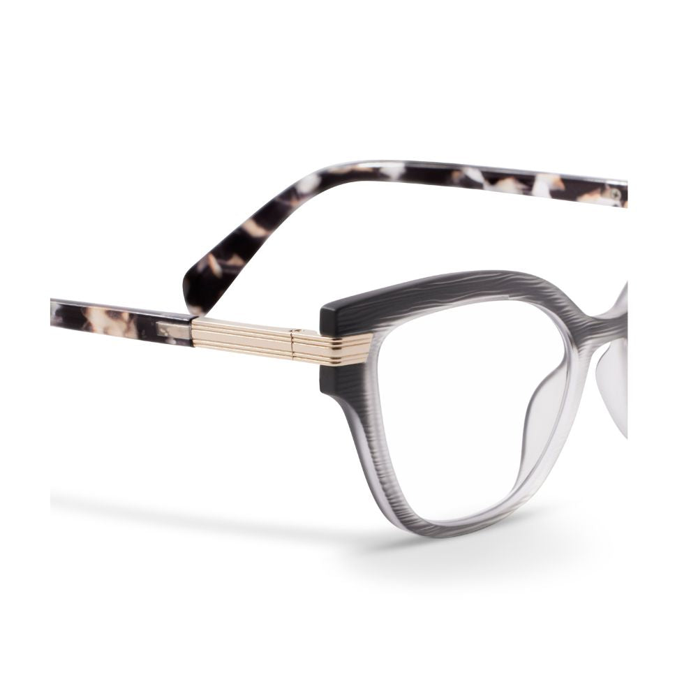 All eyes are on the Marquee. The textured and matte finish front serves understated elegance, while luxe elements like quartz-inspired temples and a wraparound gold hinge bring subtle glam. Step out in these frames and step into the spotlight.